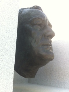 The park has more than a twinge of early ’70s brutalism to it, and had Kahn lived, I would like to think he would have made it a little more inviting. After all, the other FDR monument on the Tidal Basin in Washington even has a sculpture of FDR’s beloved dog, Fala. Here in New York, the disembodied head of Franklin Delano stares down the granite bowling alley of his namesake park, daring your approach like the Great and Powerful Oz. (And this from someone who loves what FDR did.)